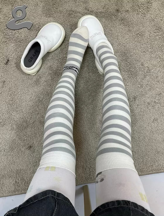 Striped Knee High Socks Grey