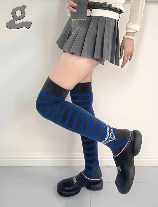 Striped Knee High Socks Blue